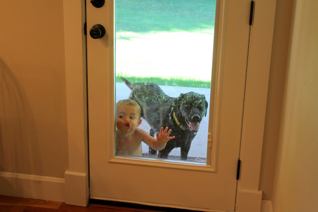 Bennett and I turned a day banned from the house into a sunny cocktail hour in the back yard. We got our carpets professionally cleaned this morning so I have officially banned my dirty black lab and sometimes equally dirty 19 month old to the back yard only. I brought out the swimming pool, hose, a tall glass of red wine and a 1 part whole milk, 1 part chocolate milk cocktail straight up for the kiddo. (note that this new milk combo has officially gotten Bennett to drink milk from a cup and off the bottle!! I am feeling guilt free due to organic whole chocolate milk and the plan to ween him to 100% whole milk in a bit)