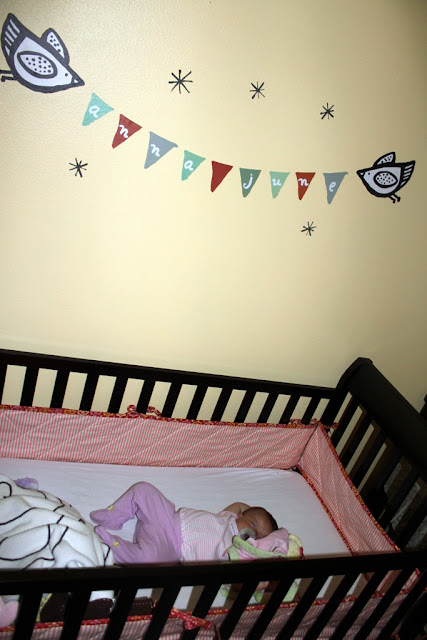 Her big girl bed... I will miss her in her bassinet next to my bed but I wont miss her almost jumping out of it at night :)